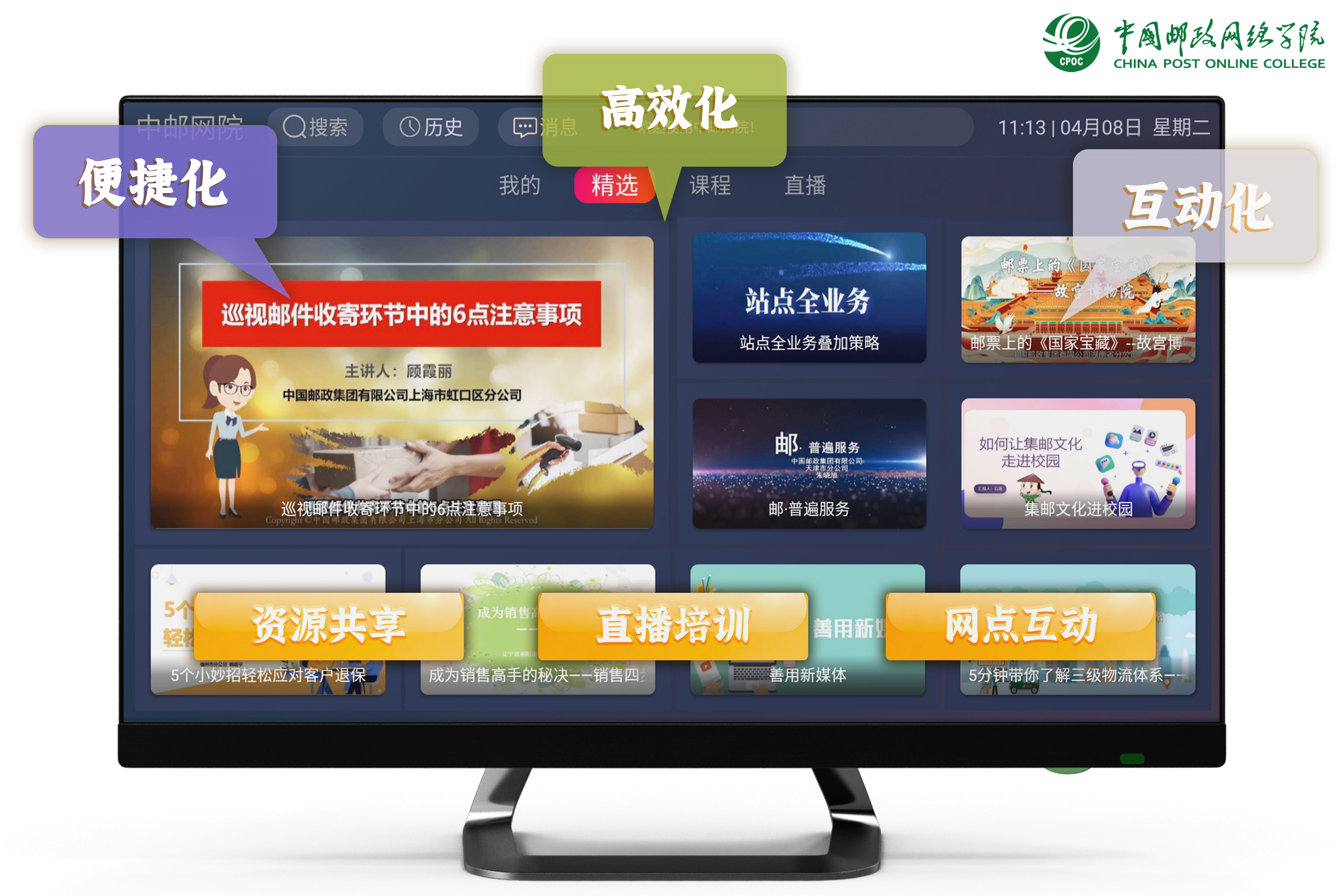 “网点智能学习终端”是一款基于网点终端屏幕,专为基层网点设计的企业在线培训系统,内置强大的资源学习、直播培训,互动交流等功能,作为网格化网络培训的最后一环节,可实现各级各类培训信息纵向贯通和横向联通,真正助力员工在数智化时代的高效学习。